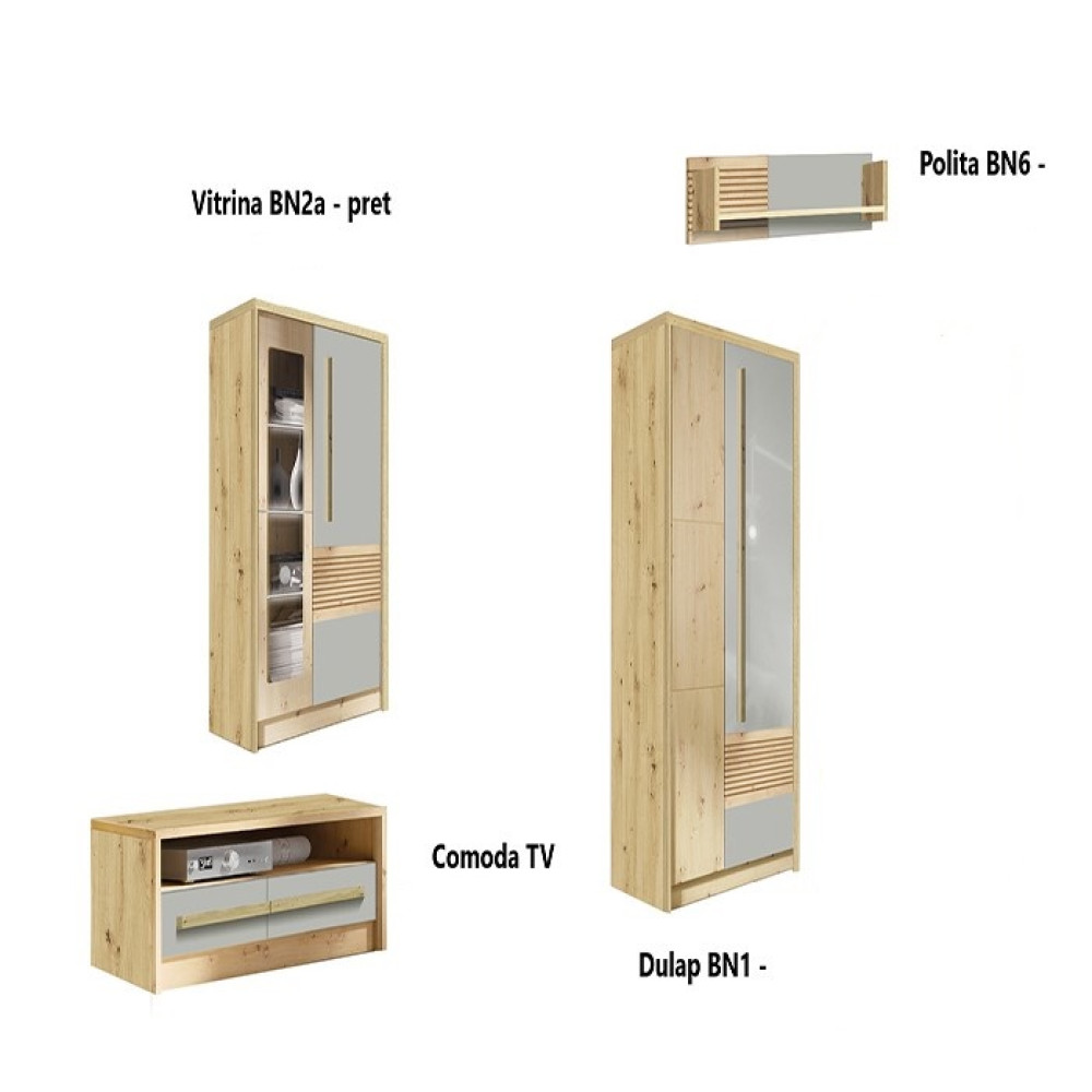 Set mobilier living Bianco – Configuratia A este un model elegant care reprezintă cel mai bine principiile amenajărilor interioare moderne. Configurația are în componență corpuri orizontale și verticale care se armonizează într-un ansamblu inedit și sunt utile pentru depozitarea hainelor sau a altor obiecte din sufrageria ta.