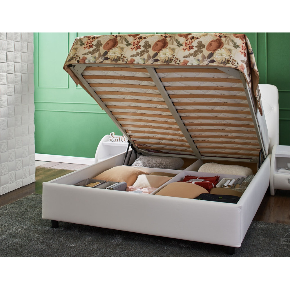 Somiera rabatabilă cu pompe de aer comprimat de 1200N oferă acces la spațiul de depozitare de sub saltea.