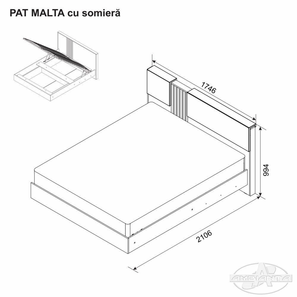 Patul Malta cu perna tapitata